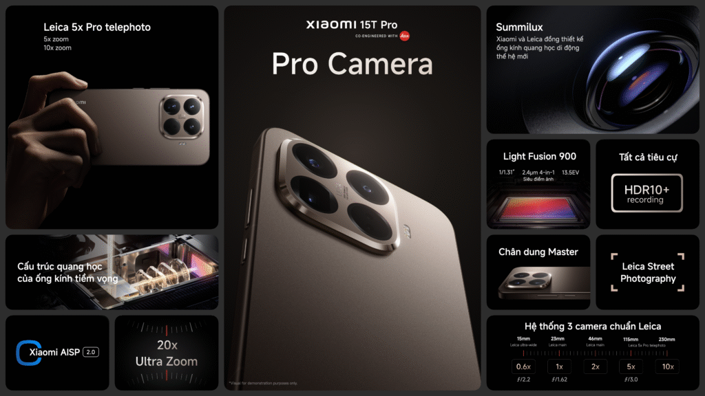 Điểm nhấn lớn nhất của thế hệ sản phẩm Xiaomi 15T Series mới chính là sự xuất hiện của camera Leica 5x Telephoto trên phiên bản Xiaomi 15T Pro. Đây là lần đầu tiên công nghệ này có mặt trên dòng Xiaomi T Series, mang đến khả năng zoom quang học 5x, zoom lossless 10x và mở rộng đến 20x với UltraZoom 2.0. Nhờ đó, người dùng có thể dễ dàng ghi lại những khoảnh khắc ở xa với chi tiết rõ nét và màu sắc chân thực.