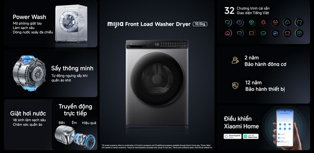 Xiaomi Việt Nam vừa chính thức mở bán Mijia Front Load Washer Dryer 10.5kg, máy giặt sấy 2 trong 1 mới nhất thuộc dòng sản phẩm Mijia chính hãng tại Việt Nam, mang đến giải pháp giặt sấy toàn diện, thông minh và tiết kiệm không gian. Sản phẩm là một mảnh ghép quan trọng, góp phần hoàn thiện hệ sinh thái nhà thông minh của Xiaomi tại Việt Nam.